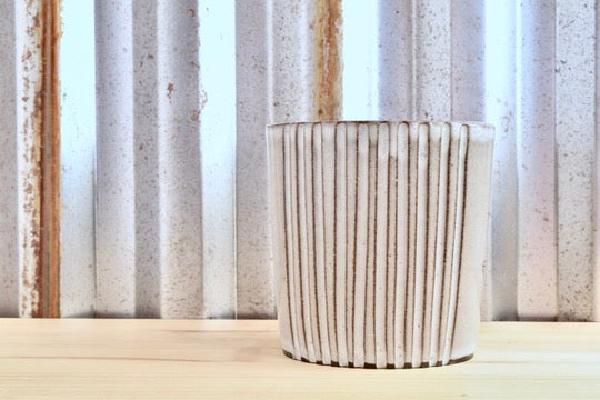 This cup was hand thrown on the potter's wheel from a creamy chocolate clay. It is glazed with a lovely eggshell glaze inside and out. The lotus illustration is my original art. The decals are applied over the glaze and the cup is fired a third time to permanently affix the decal to the cup.
